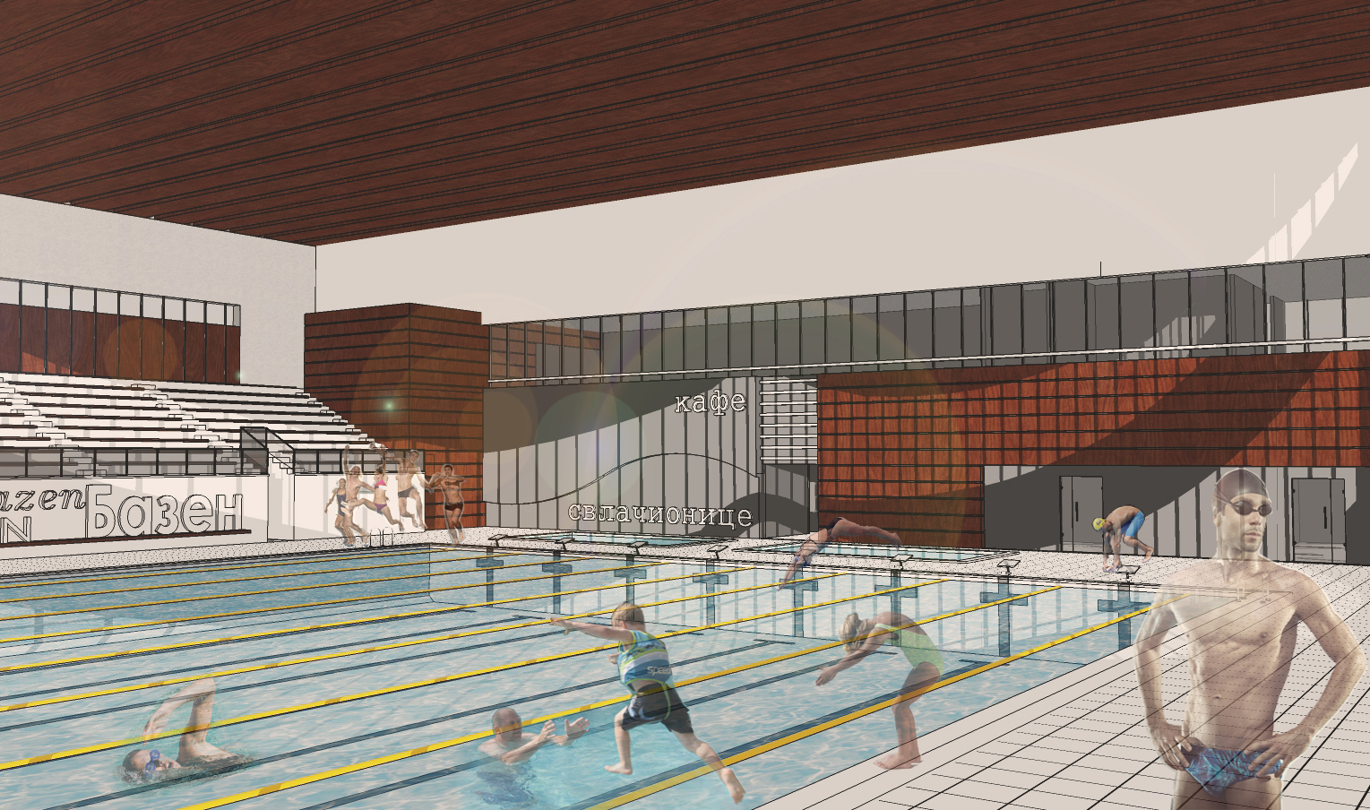 The swimming pool facility in Požarevac is a competitive solution of a team of architects. The functional organization of the swimming pool is in accordance with the Regulations for this type of facilities, with an emphasis on the separation of “clean” and “dirty” user paths. In addition to the accompanying facilities of the pool such as showers and changing rooms, the facility also provides facilities such as a cafe, management offices and the like.
